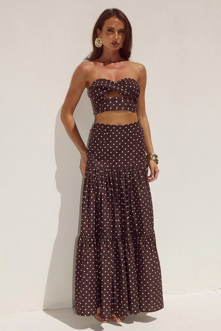 Ayla Maxi Skirt - Choc/Lemon Polka