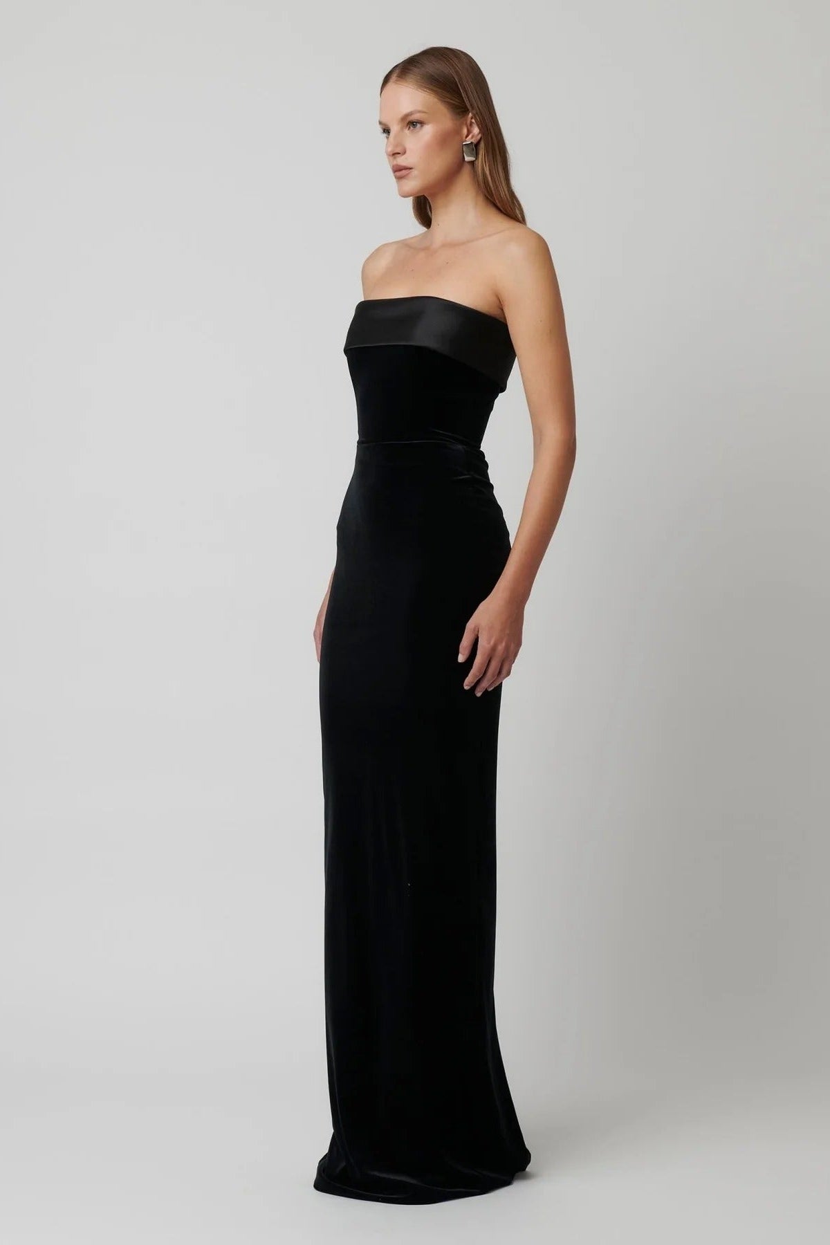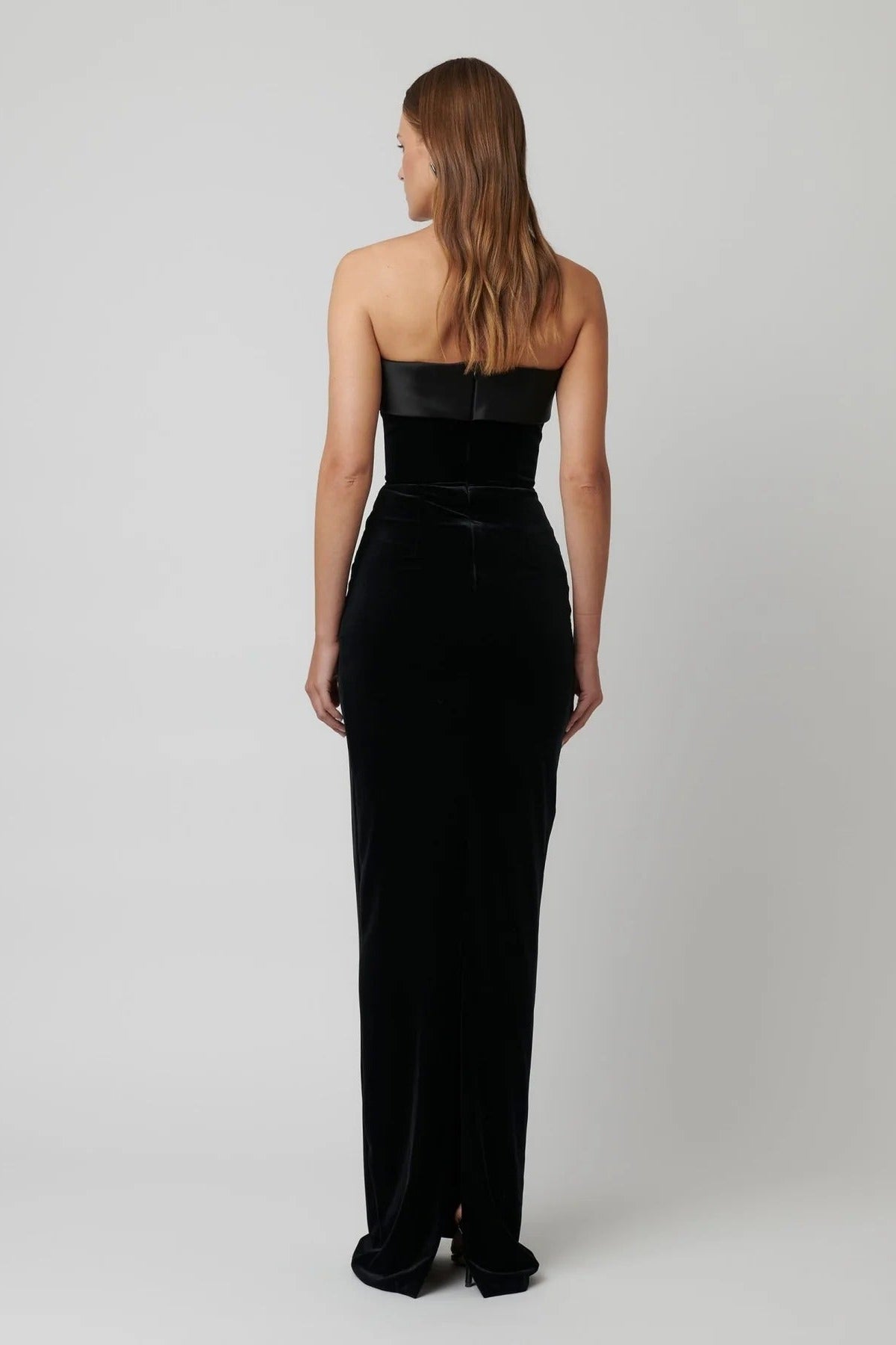 Introducing Monroe, one of our most classic silhouettes from our core range. Monroe features a beautiful strapless silhouette, with a folded over panel at the bodice. Crafted from our signature stretch crepe for a beautiful cinched figure, with a split at the back for ease movement.