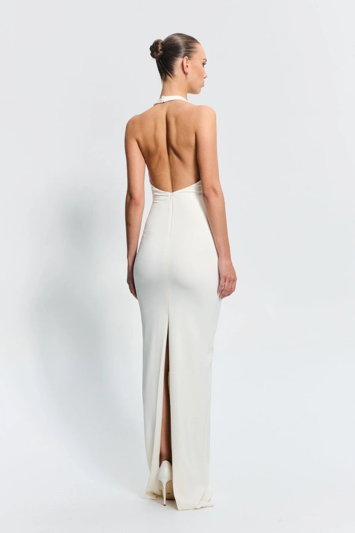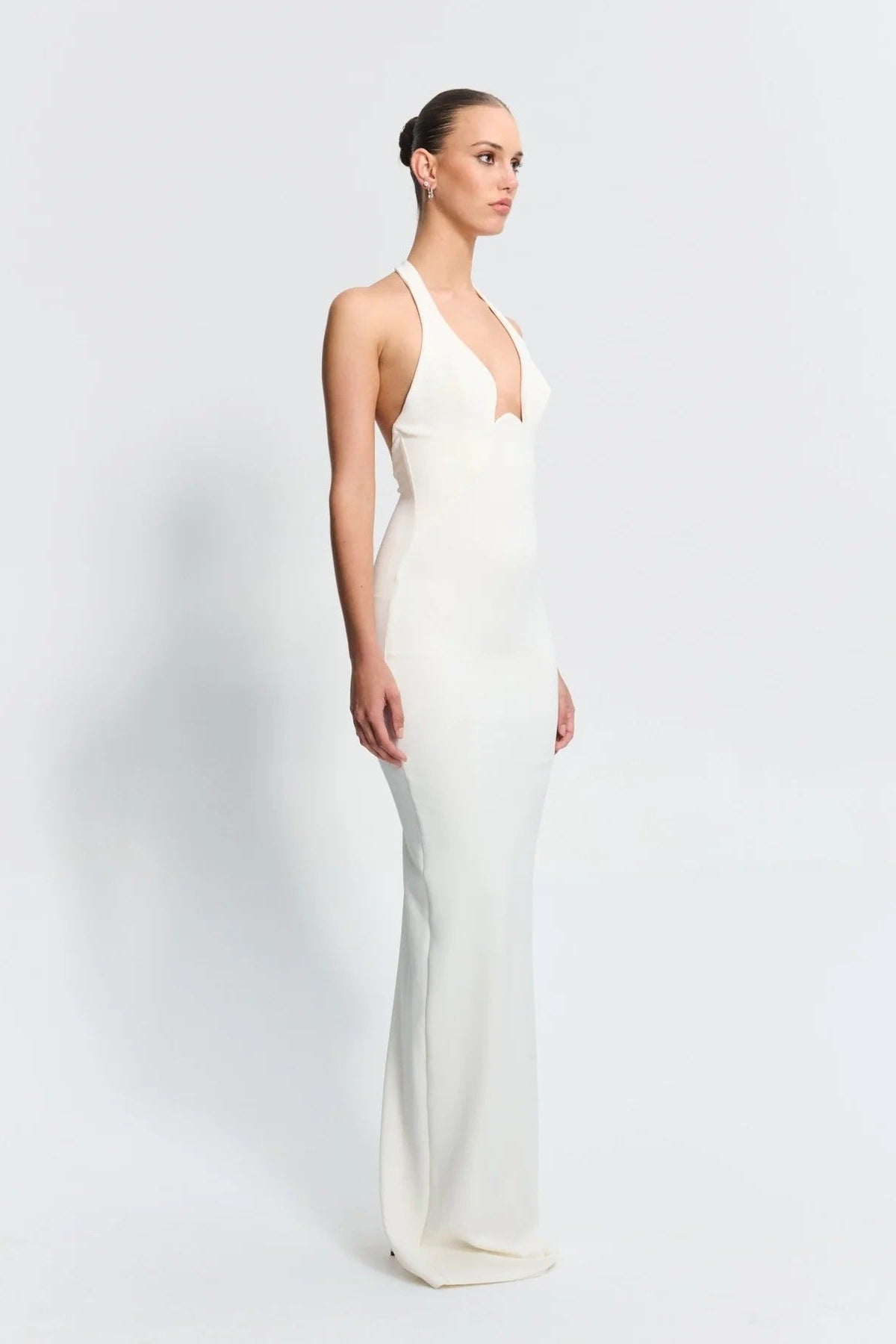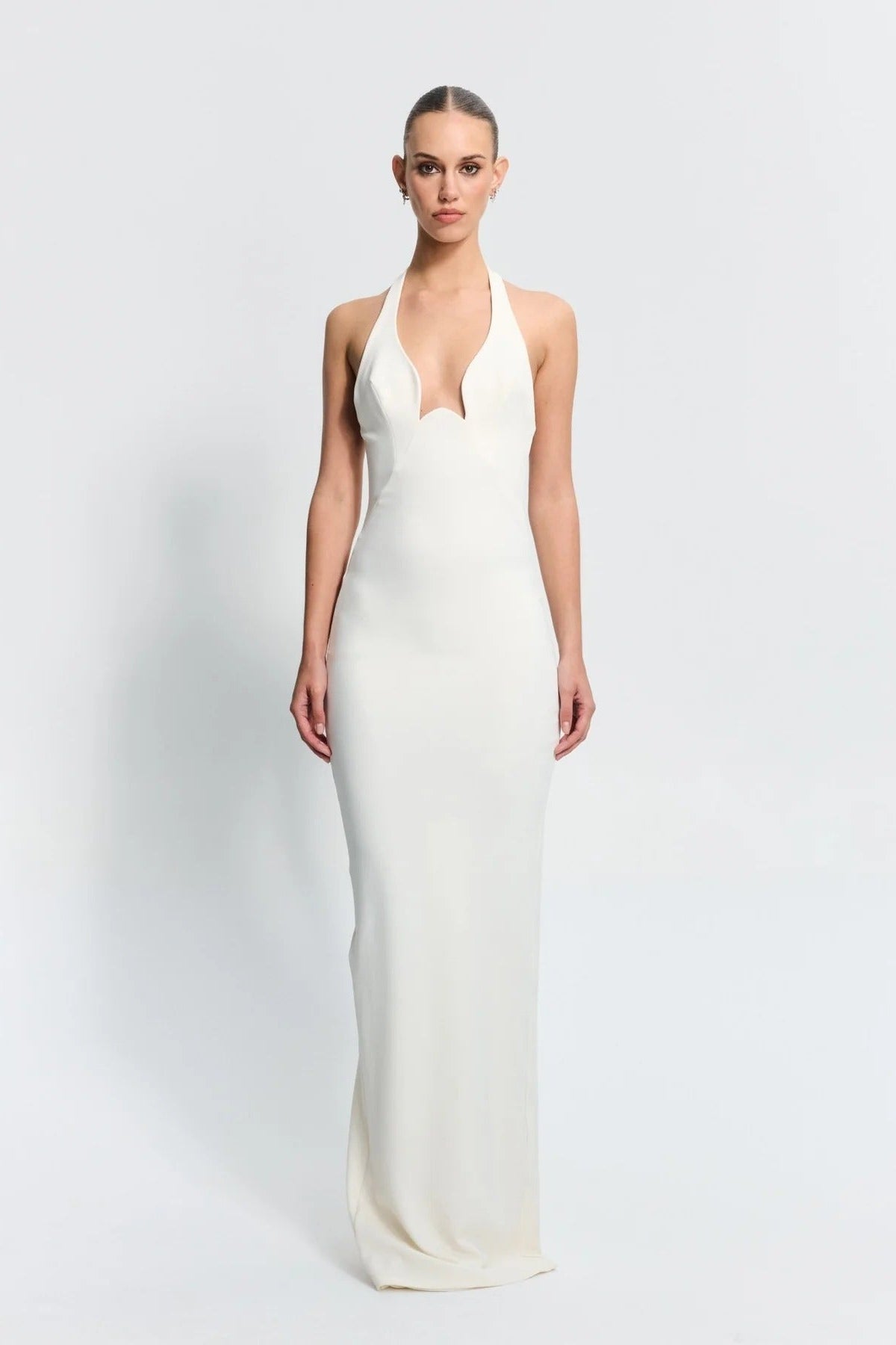Celestial in spirit, the Starla Gown features a beautifully sculpted neckline that falls seamlessly into a low back gown. Crafted in crepe for the perfect figure hugging silhouette, Starla is a piece of timeless allure.