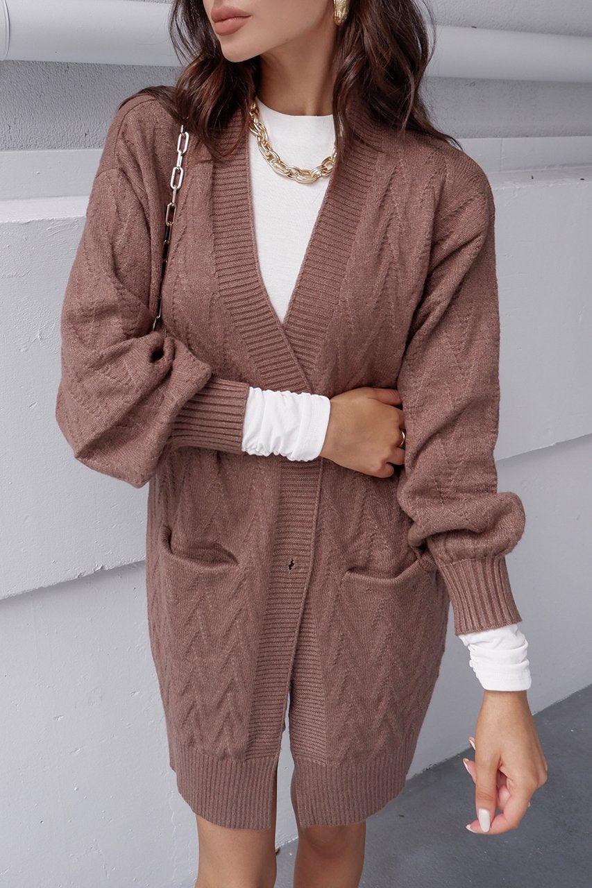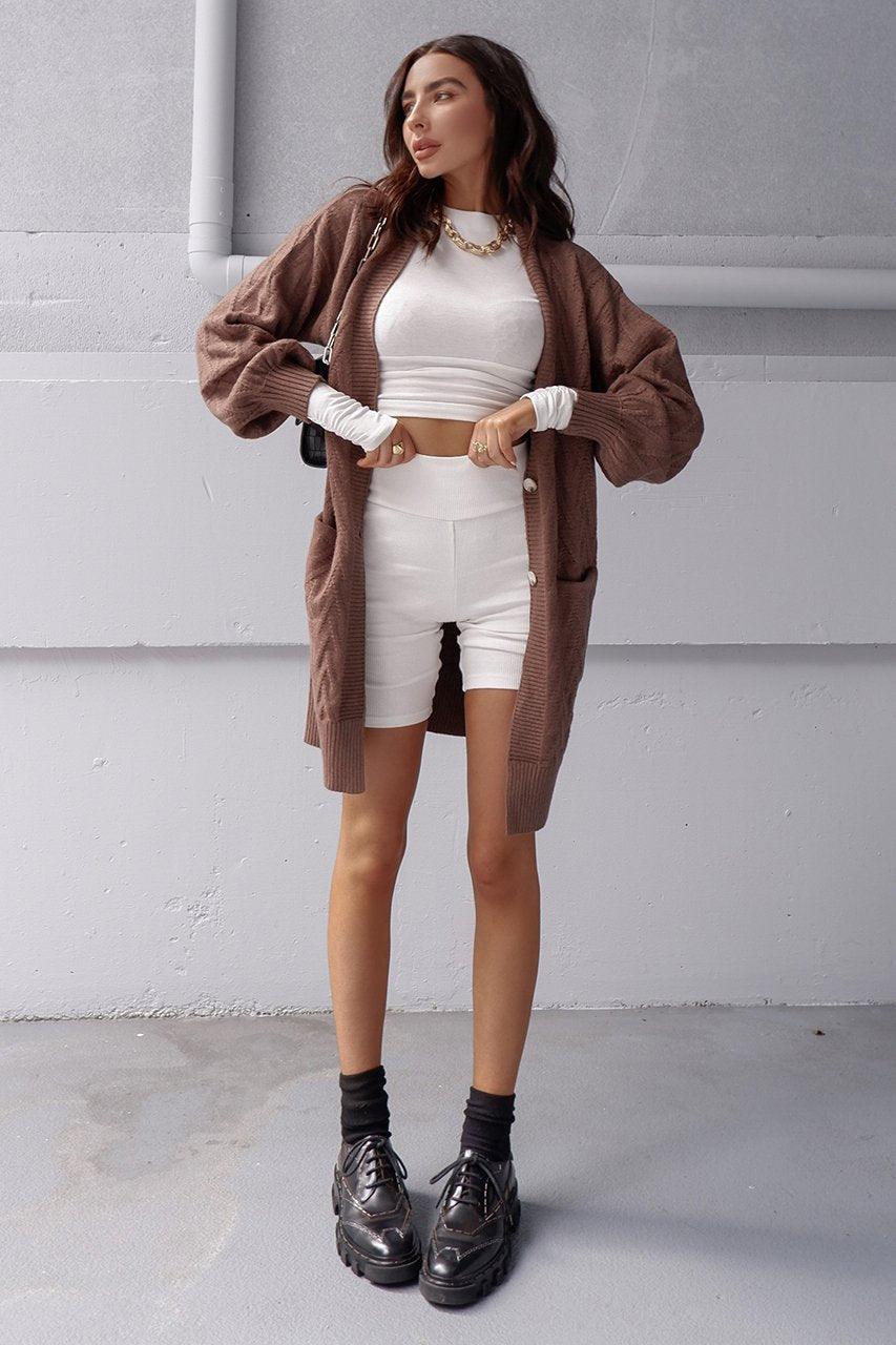 Our Ariel Knit Cardigan is the perfect comfort piece that features center-front buttons, pockets at the front, elasticated cuffs, perforated patterns throughout the piece, a relaxed fit and no lining.