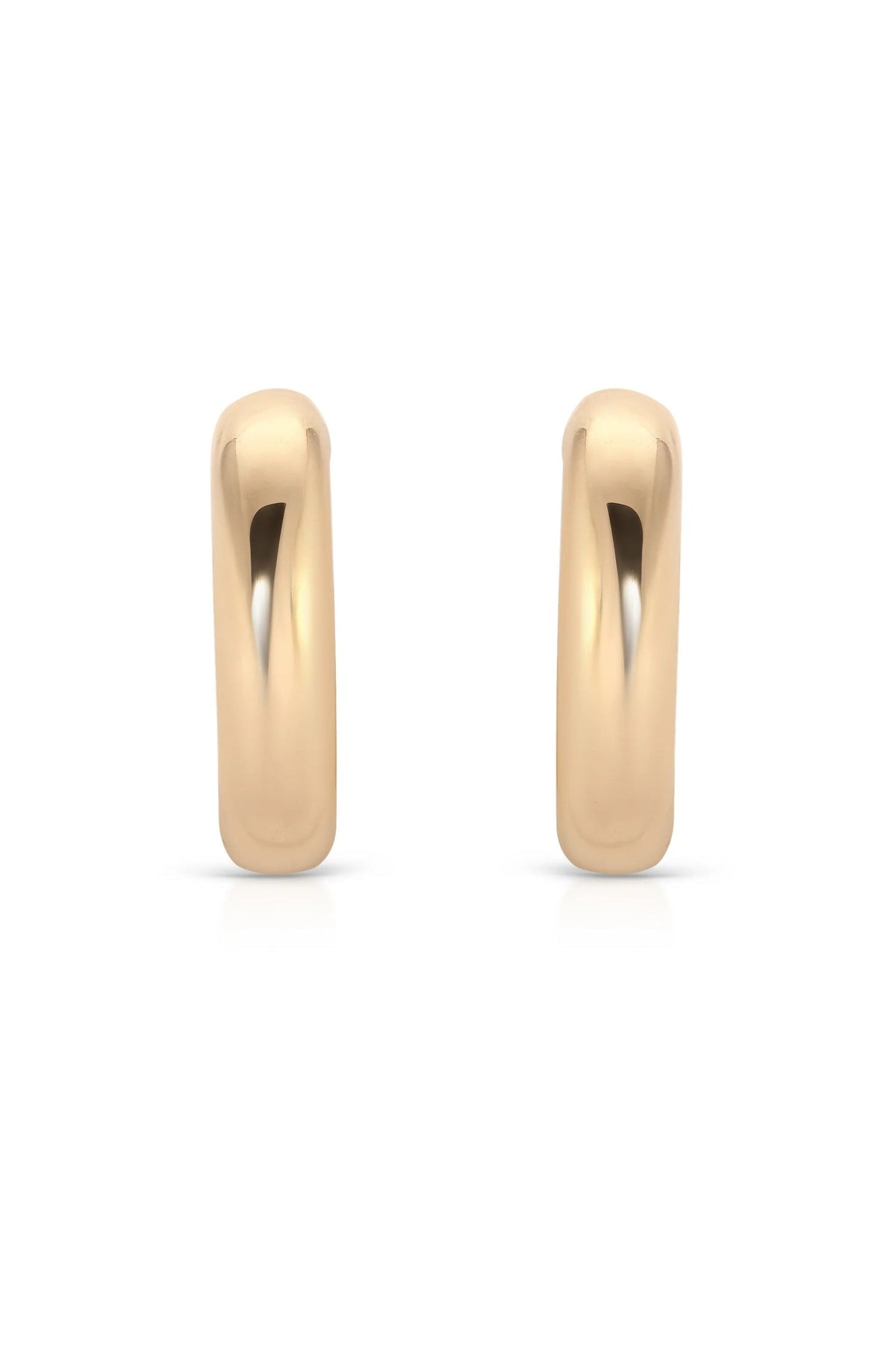 Meet our Small Thick Classic Hoops, available in 18k gold. This smaller 1" hoop is the perfect grab-and-go earring, fitting in with any ear stack and with any look.