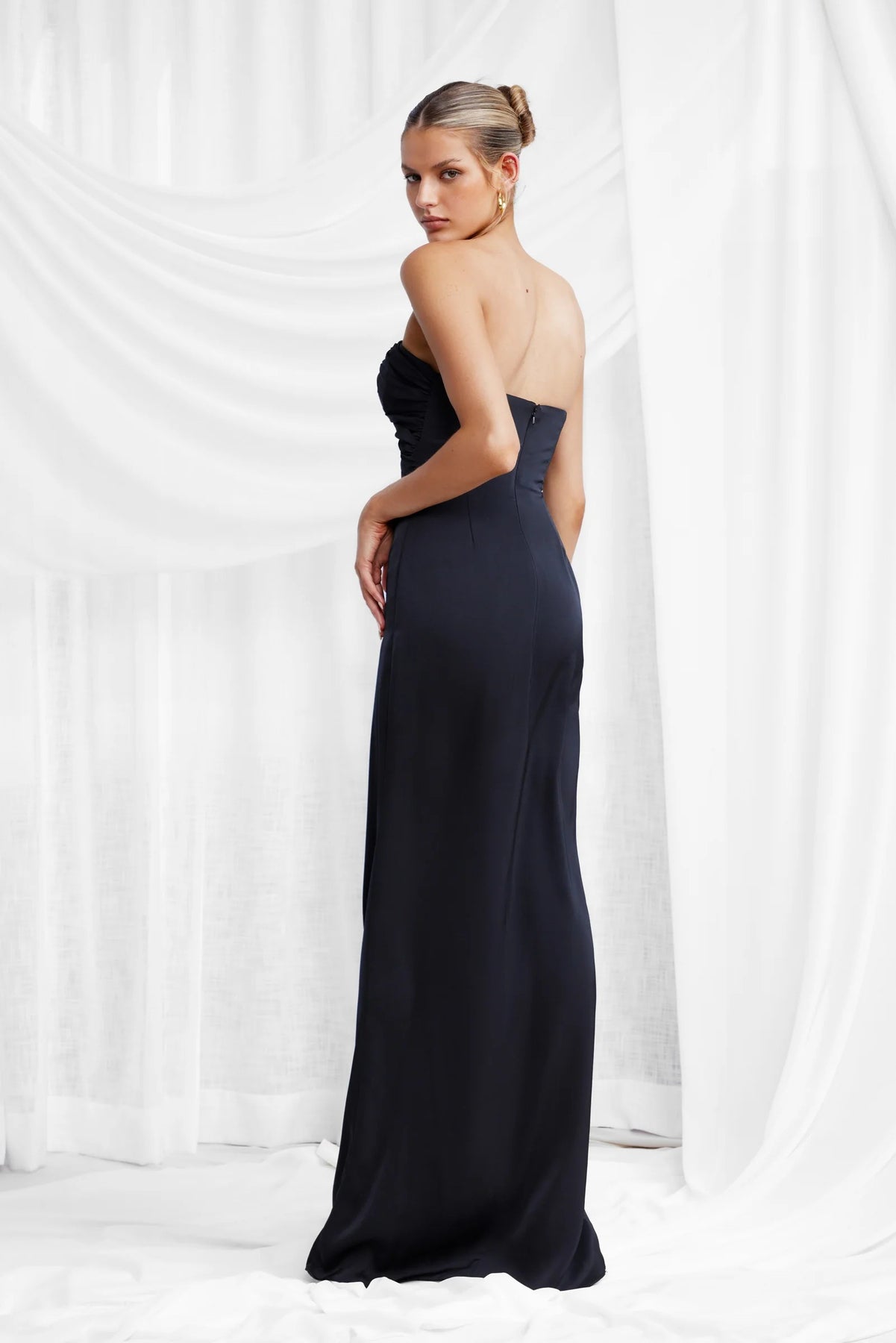 The Magnolia Dress is cut from a luxe, midweight stretch satin. With its simple but elegant silhouette this piece features a beautifully gathered neckline with a rounded bust design. It is full length and fastened with an invisible zipper.