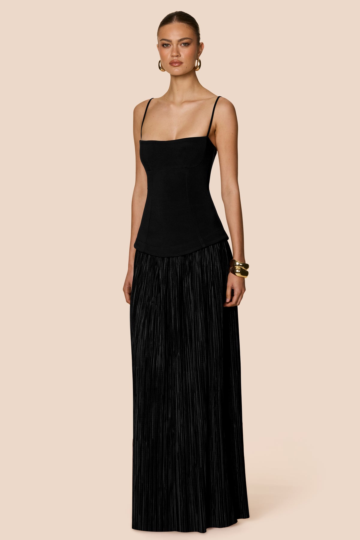 - Pleated maxi skirt