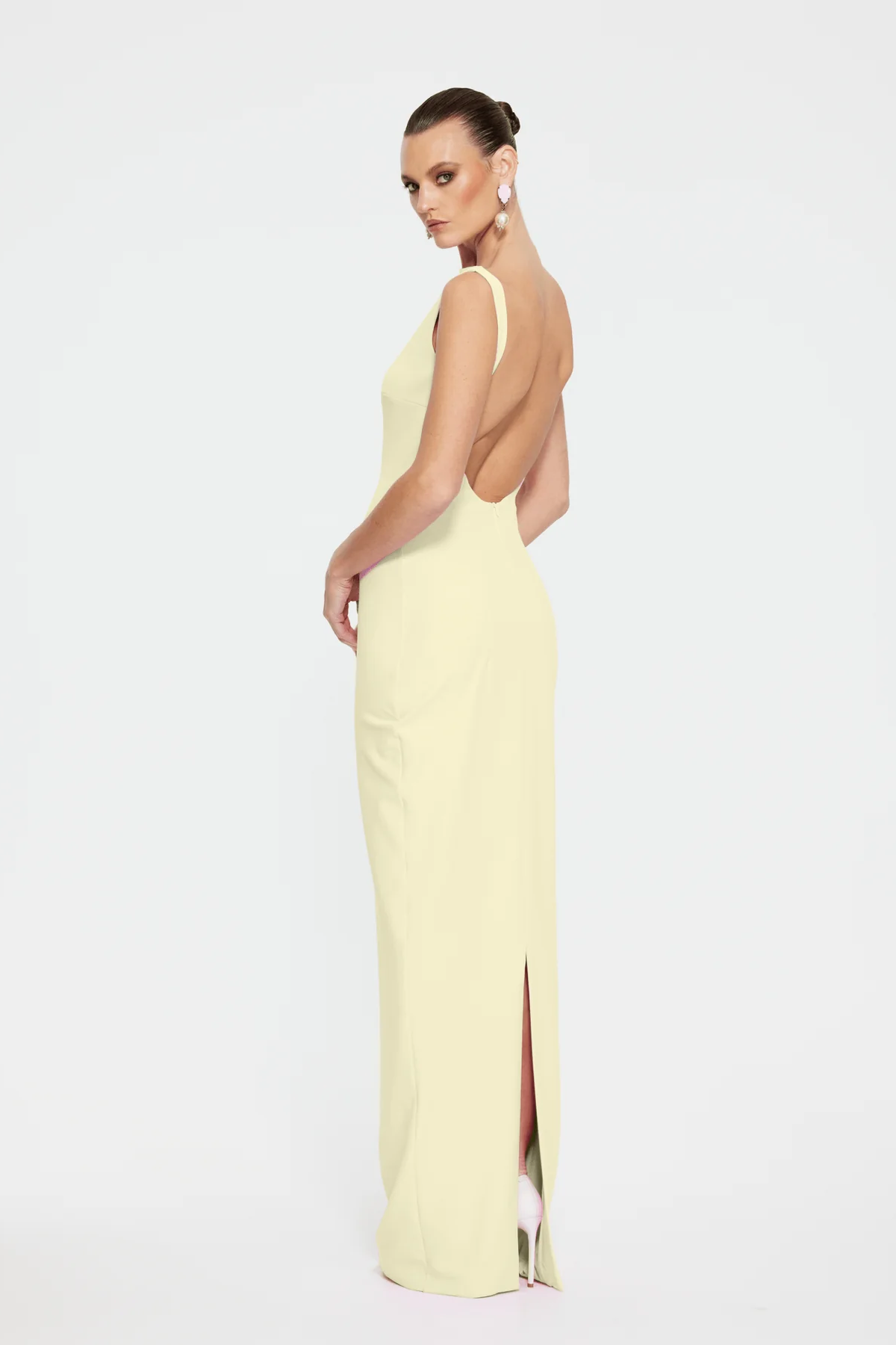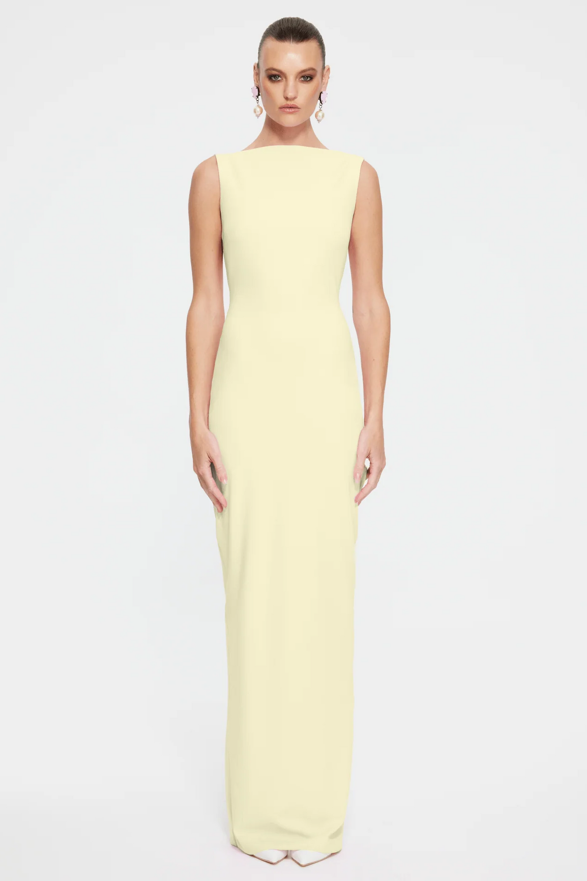 Welcoming one our core styles, the Verona Gown. Featuring a beautiful high straight neckline that falls into a low back and cut with a slight split at the back. Crafted from our luxurious stretch crepe that hugs the figure for the most beautiful cinched silhouette.